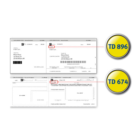 Presentano, in basso a destra, i codici numerici 896 o 674 e sono precompilati.