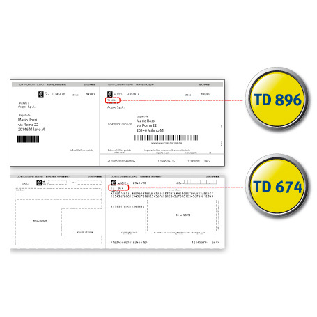 Presentano, in basso a destra, i codici numerici 896 o 674 e sono precompilati.